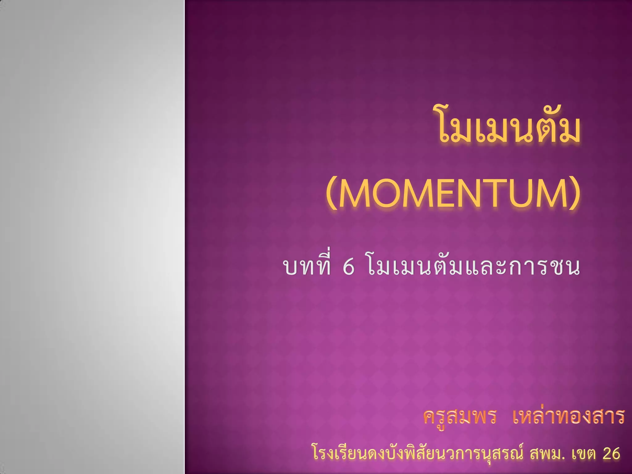 โมเมนตัม คือ ปริมาณที่บอกถึงสภาพการเคลื่อนที่ไป