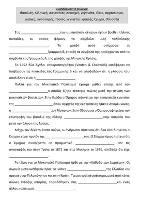 Στις ______________________των μυκηναϊκών κέντρων έχουν βρεθεί πήλινες