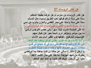 قصائد الشاعر الدكتور عبد الرحمن العشماوي تتناول معاناة المسلمين في مختلف بقاع الأرض، مع التركيز على قضايا مأساة الشعوب الإسلامية مثل بورما والعراق وفلسطين. تعكس الأبيات مشاعر الألم والحزن التي يعيشها المسلمون بسبب الحروب والاعتداءات، وتدعو إلى الوحدة والتصدي لهذه الأزمات. تنبه القصائد إلى ضرورة التحرك الفوري لنجدة إخوانهم والتكاتف ضد الظلم والعدوان.