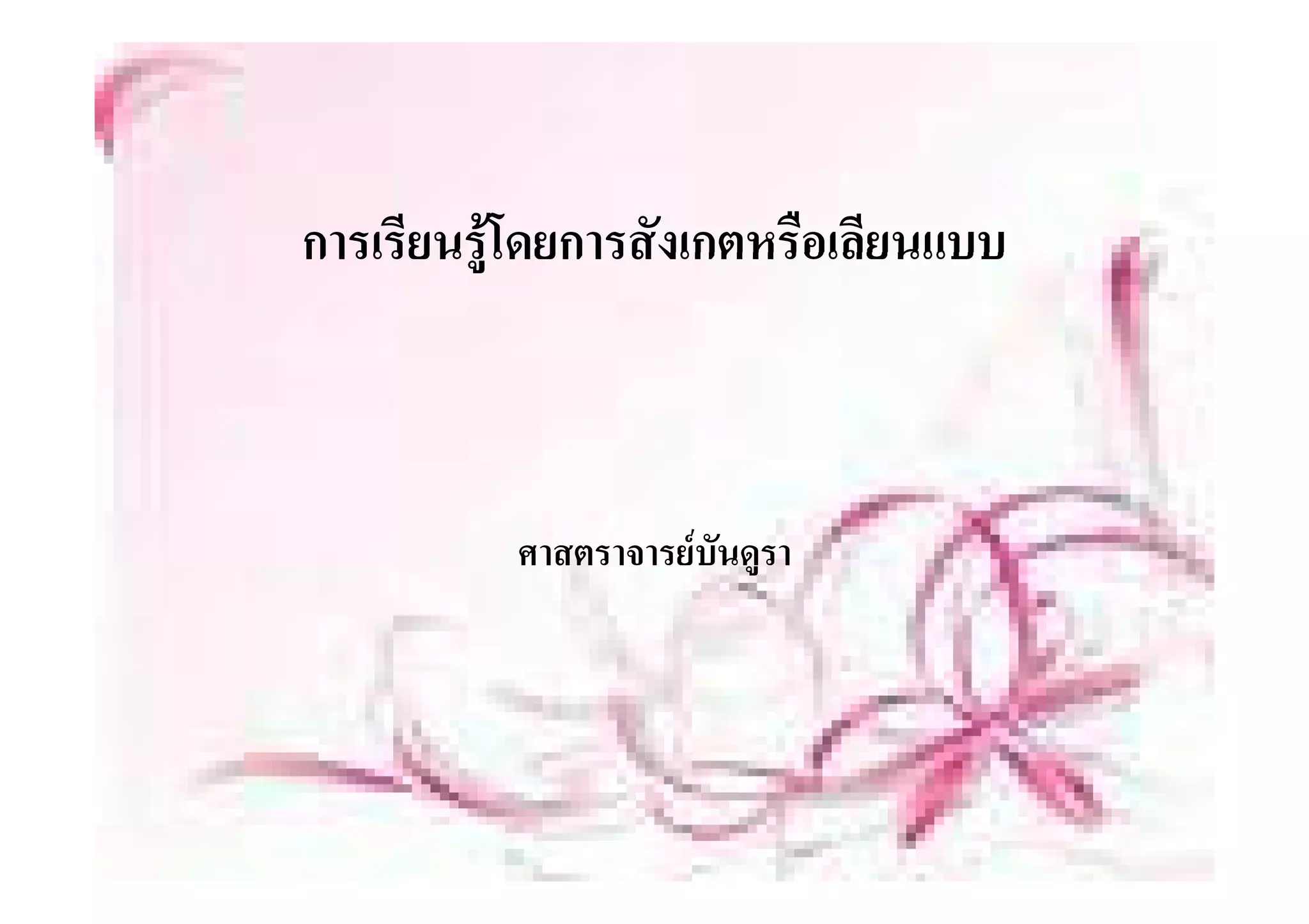เรีียนรูแบบการสังเกตหรืือเลียนแบบจากตัวแบบ ซึ่ึงอาจจะเปนไดท้ังตัวบุคคลจริิง