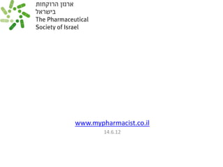 יש שמתעלמים מהתרופות הכרוניות שלהם, לוקחים אותם כמו שעון, או לא לוקחים בכלל. במצגת תוכלו לקבל כלים כדי לנהל את התרופות שלכם ולחיות איתם בשלום, למענכם... ללימוד עצמי ובדיקת תרופות אקטיבית, אתם מוזמנים להרשם לסדרת הטיפים שהכנתי ב http://www.mypharmacist.co.il/registration-form.html