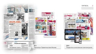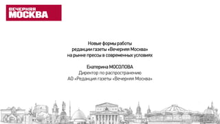 Документ описывает новые формы работы редакции газеты «Вечерняя Москва» на конкурентном рынке прессы в условиях современных вызовов. В нем рассматриваются различные проекты, такие как «Пресса в образовании», нацеленные на стимулирование интереса молодежи к печатным СМИ, а также представлены статистические данные о тиражах и охвате читателей. Газета сохраняет лидерство на рынке, предлагая многоканальные способы распространения своей продукции.