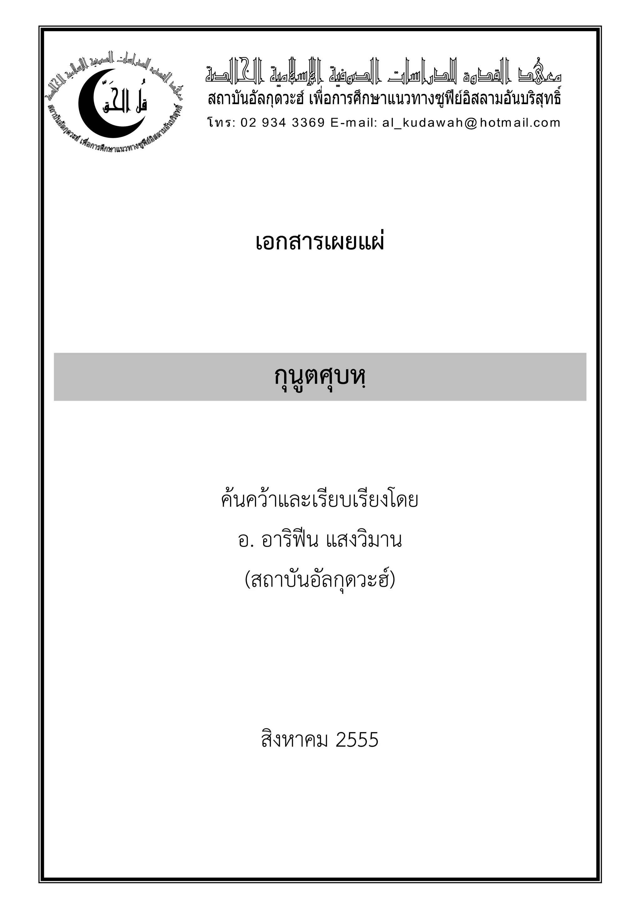 กุนูตศุบหฺ ค้นคว้าและเรียบเรียงโดย อ. อาริฟีน แสงวิมาน (สถาบันอัลกุดวะฮ์) สิงหาคม 2555
