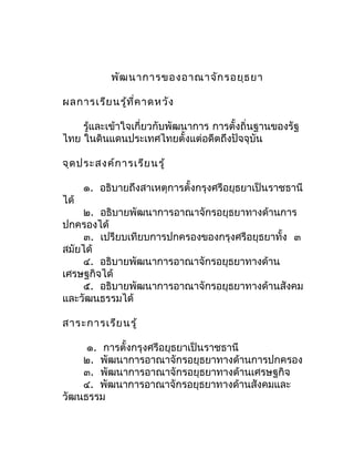 จุด ประสงค์ อธิบายพัฒนาการอาณาจักรอยุธยาทางด้าน
