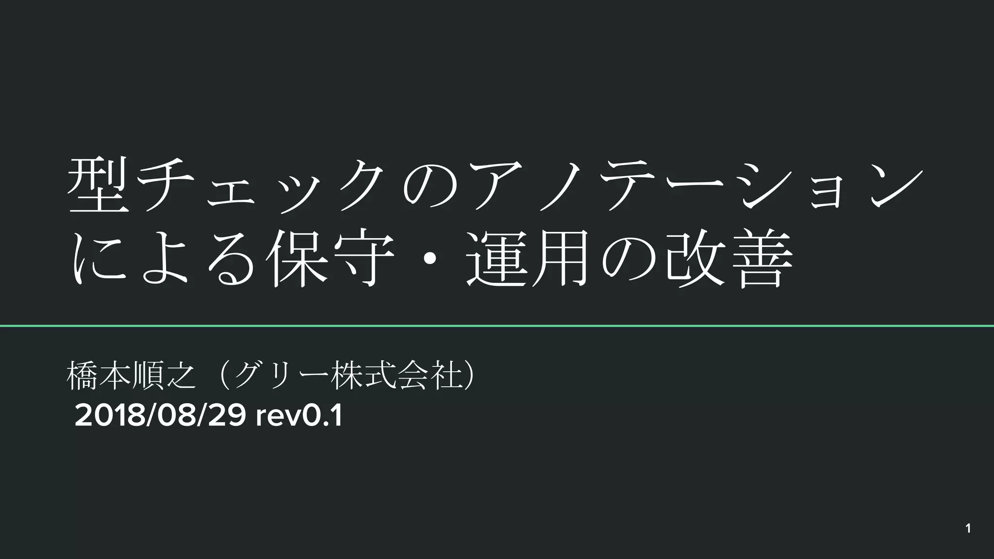 型チェックのアノテーション による保守・運用の改善 橋本順之(グリー株式会社) 2018/08/29 rev0.1 1