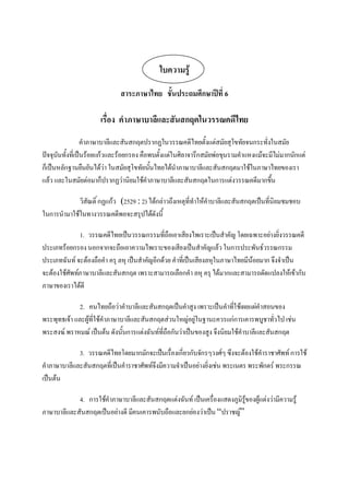 ใบความรู้ภาษาไทย( คำภาษาบาลีสันสกฤต)