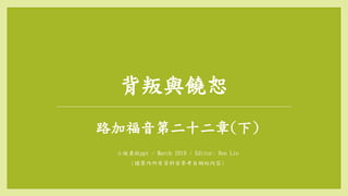 背叛與饒恕 路加福音第二十二章(下) 小組查經ppt / March