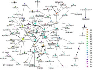◦ 학위수여기관 네트워크 – 공동저자의 학위수여기관간 연결