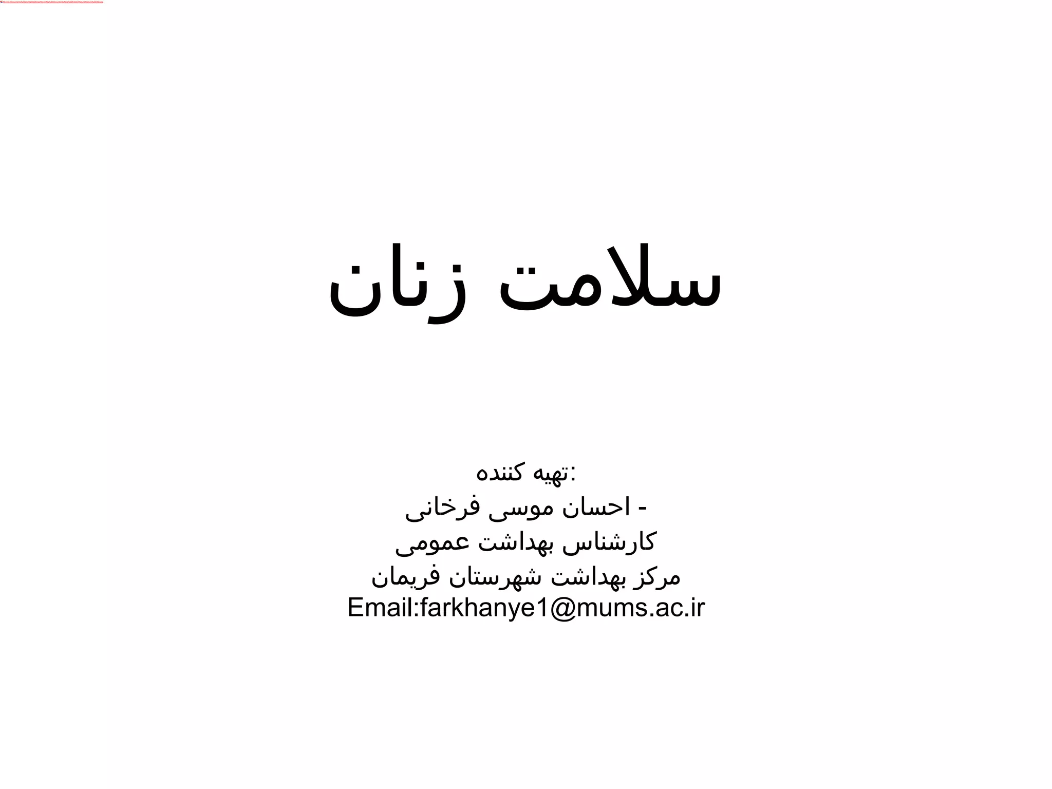 سلامت زنان تهیهکننده : احسان موسی فرخانی - کارشناس بهداشت عمومی مرکز بهداشت شهرستان فریمان Email:farkhanye1@mums.ac.ir
