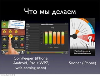 Документ описывает стратегии и выборы, связанные с мобильными приложениями как бизнесом, включая анализ рынка и возможности для успеха. Упоминаются ключевые цифры из App Store, такие как выплаченные суммы разработчикам и количество приложений. Авторы предлагают рекомендации по оптимизации успеха продукта и приводят примеры собственных приложений.
