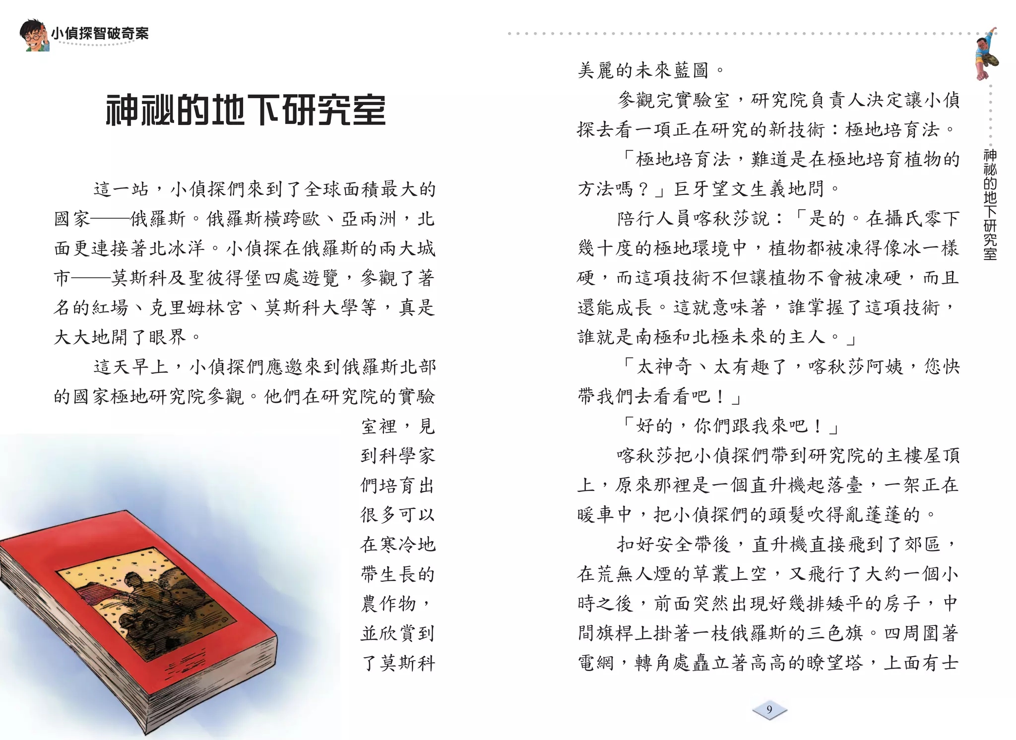 小侦探们参观了俄罗斯的一个极地研究院,了解了一种名为极地培育法的新技术,该技术可以在极冷环境中培育植物。随后,他们发现科学研究队发出的求救信号可能是冒充的,决定与救援队一起前往北极,调查事件的真相。故事展示了小侦探们的冒险精神和科学探索的乐趣。