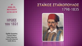Ο Στάικος Σταϊκόπουλος ήταν ένας αγνός αγωνιστής. Με την επιμονή του κατάφερε να καταλάβει το Παλαμήδι μετά από πολύμηνη πολιορκία. Φυσικά, ξεχώρισε σε πολλές μάχες στην Πελοπόννησο.