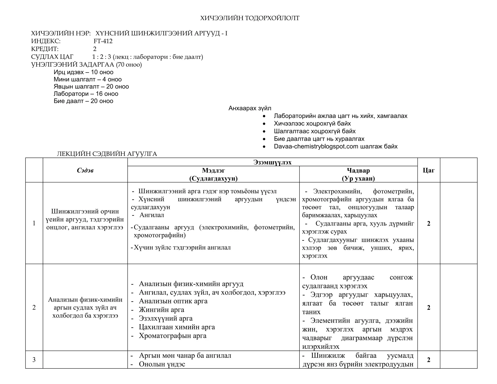 СУДЛАХ ЦАГ 1 : 2 : 3 (лекц : лаборатори : бие даалт)