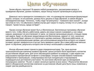 Документ анализирует важность увязки обучения персонала с стратегическими целями организации, подчеркивая, что бесполезные программы могут отвлекать сотрудников и не приносить реальной пользы. Он описывает различные цели обучения, в том числе повышение производительности, профессиональных знаний и мотивации, а также ошибки компаний при разработке учебных программ. Обучение должно быть адаптировано к потребностям компании и актуальным требованиям, иначе оно рискует стать пустой тратой времени и средств.