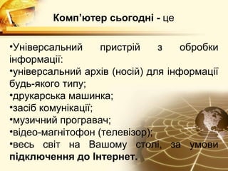 Комп’ютер сьогодні -це