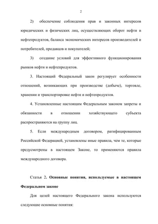 Федеральный закон «Об особенностях оборота нефти и нефтепродуктов» регулирует отношения, возникающие при производстве, торговле, хранении и транспортировке нефти и нефтепродуктов в России, с целью обеспечения единства экономического пространства и защиты прав участников рынка. Закон вводит требования к деятельности хозяйствующих субъектов, ограничивает возможности доминирующих компаний и устанавливает обязанности по раскрытию информации. Основное внимание уделяется предотвращению недобросовестной конкуренции и обеспечению ценовой прозрачности на рынках нефти и нефтепродуктов.