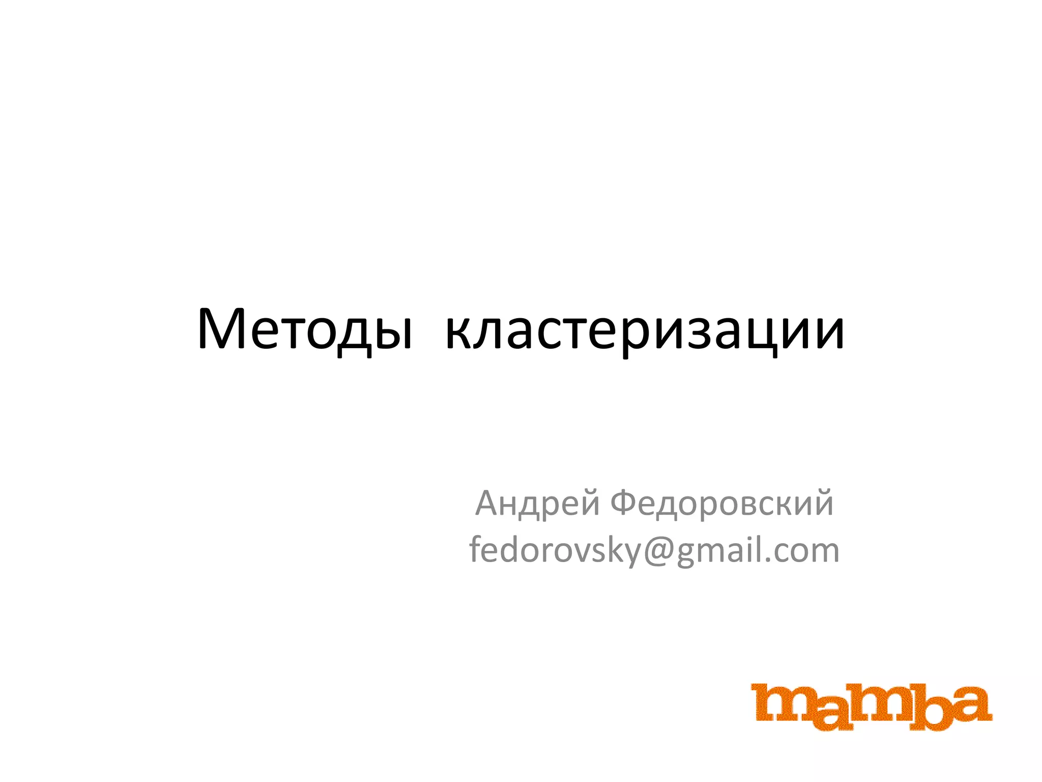 Документ описывает методы кластеризации и их применение в обучении без учителя, акцентируя внимание на разбиении объектов на группы и нахождении представителей классов. Рассматриваются подходы к снижению размерности, различные виды кластеров и алгоритмы, такие как k-means и DBSCAN. Также упоминаются критерии остановки и рекомендации по выбору методов в зависимости от особенностей данных.