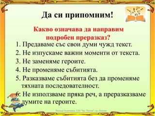 ! Преразказва се в 3л. ед. ч., сегашно време или се