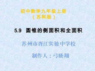 文档介绍了九年级数学的圆锥的侧面积和全面积的知识,包含圆锥的基本性质和性质之间的数量关系。通过实例和练习,学生可以学习如何计算圆锥的表面面积并理解圆锥的侧面展开图。文档还包括了与圆锥相关的思考题以帮助学生加深对概念的理解。