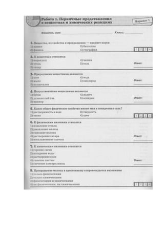 вариант №1 по теме первоначальные сведения о веществе