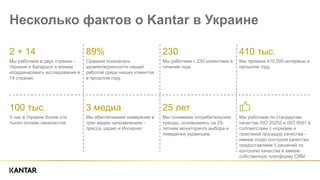 Документ содержит информацию о мобильном интернете в Украине, включая статистику использования мобильных устройств и привычки пользователей. 78% интернет-аудитории использует мобильные устройства, и пользователи проводят в среднем 3,6 часов онлайн, используя различные приложения. Kantar TNS предоставляет услуги исследования рынка и анализа потребительских трендов на основе 25-летнего мониторинга поведения украинцев.