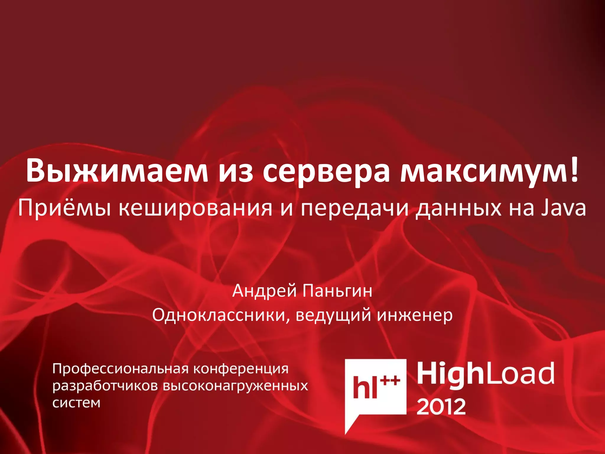 Документ обсуждает архитектурные подходы и методы оптимизации производительности серверов Одноклассников, разработанных на Java, включая проблемы и решения, связанные с сокетами, сериализацией и кешированием. Освещаются технологии для управления высоконагруженными системами, таких как использование NIO и JNI, а также важность эффективной сериализации и кеширования данных. В заключение приводятся примеры реализации и ссылки на дополнительные ресурсы.