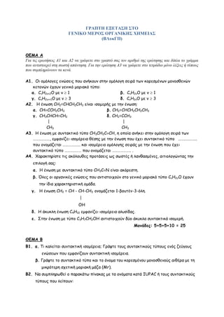 γραπτη εξεταση στο γενικο μερος οργανικης χημειας (βλγενπ)