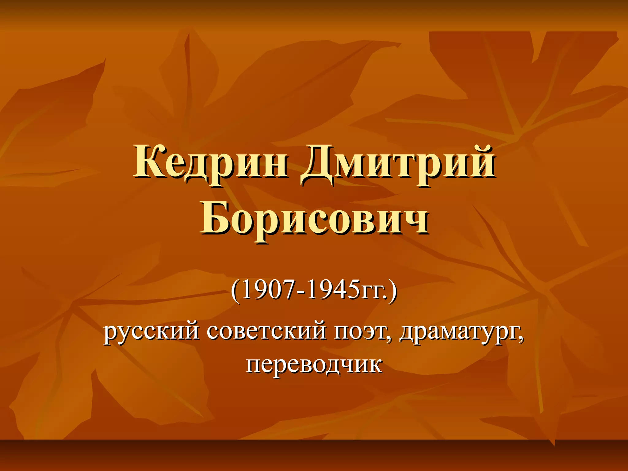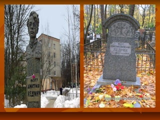 Дмитрий Борисович Кедрин (1907-1945) был русским советским поэтом и драматургом, родившимся в Украине и жившим в Москве, где работал литературным консультантом. Его единственный прижизненный сборник стихов 'Свидетели' вышел в 1940 году, но подвергся цензуре. Кедрин трагически погиб в 1945 году в московской электричке и был похоронен на Введенском кладбище.