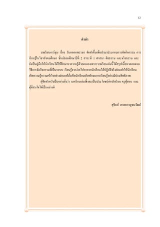 คานา บทเรี ยนการ์ตูน เรื่ อง วันอออกพรรษา จัดทาขึ้นเพื่อนามาประกอบการจัดกิจกรรม การ เรี ยนรูในวิชาสังคมศึกษา ชั้นมัธยมศึกษาปี ที่ 2 สาระที่ 1 ศาสนา ศีลธรรม และจริ ยธรรม และ ้ ยังเป็ นคู่มือให้นกเรี ยนได้ใช้ศึกษาหาความรู้ดวยตนเองเพราะบทเรี ยนเล่มนี้ได้สรุ ปเนื้อหาตลอดจน ั ้ วิธีการจัดกิจกรรมที่เป็ นระบบ เรี ยนรู้จากง่ายไปหายากนักเรี ยนได้ปฏิบติจริ งย่อมทาให้นกเรี ยน ั ั เกิดความรู้ความเข้าใจอย่างถ่องแท้นนคือนักเรี ยนเกิดทักษะการเรี ยนรู้อย่างมีประสิทธิภาพ ั่ ผูจดทาหวังเป็ นอย่างยิงว่า บทเรี ยนเล่มนี้คงจะเป็ นประโยชน์ต่อนักเรี ยน ครู ผสอน และ ้ั ่ ู้ ผูที่สนใจได้เป็ นอย่างดี ้ สุจินต์ ตาละกาญจนวัฒน์