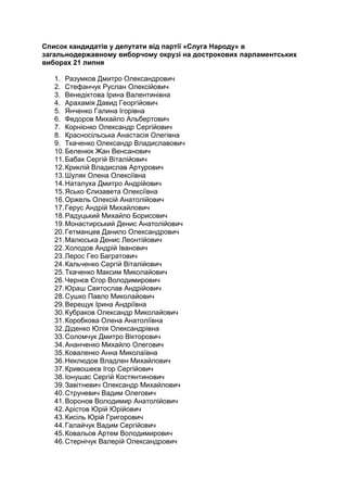 Список кандидатів удепутати від партії «Слуга Народу» в