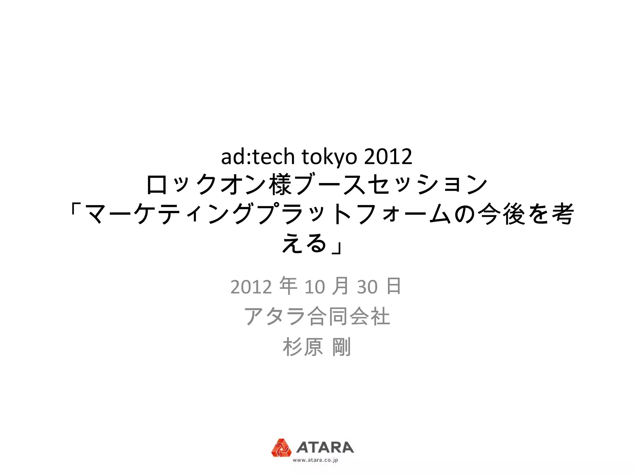 統合キャンペーン管理プラットフォーム(Kenshoo, Marine, Adobeなど)の歴史、拝見、概要、日本の状況などについて。ad:tech tokyo 2012のロックオン社ブースでのパネルセッションにて。 http://www.atara.co.jp/