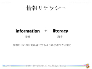 バイオインフォマティクス 情報と法令 情報リテラシー information 情報 + literacy 識字 情報を自己の目的に適合するように使用できる能力 K.I.T. © 2011 -