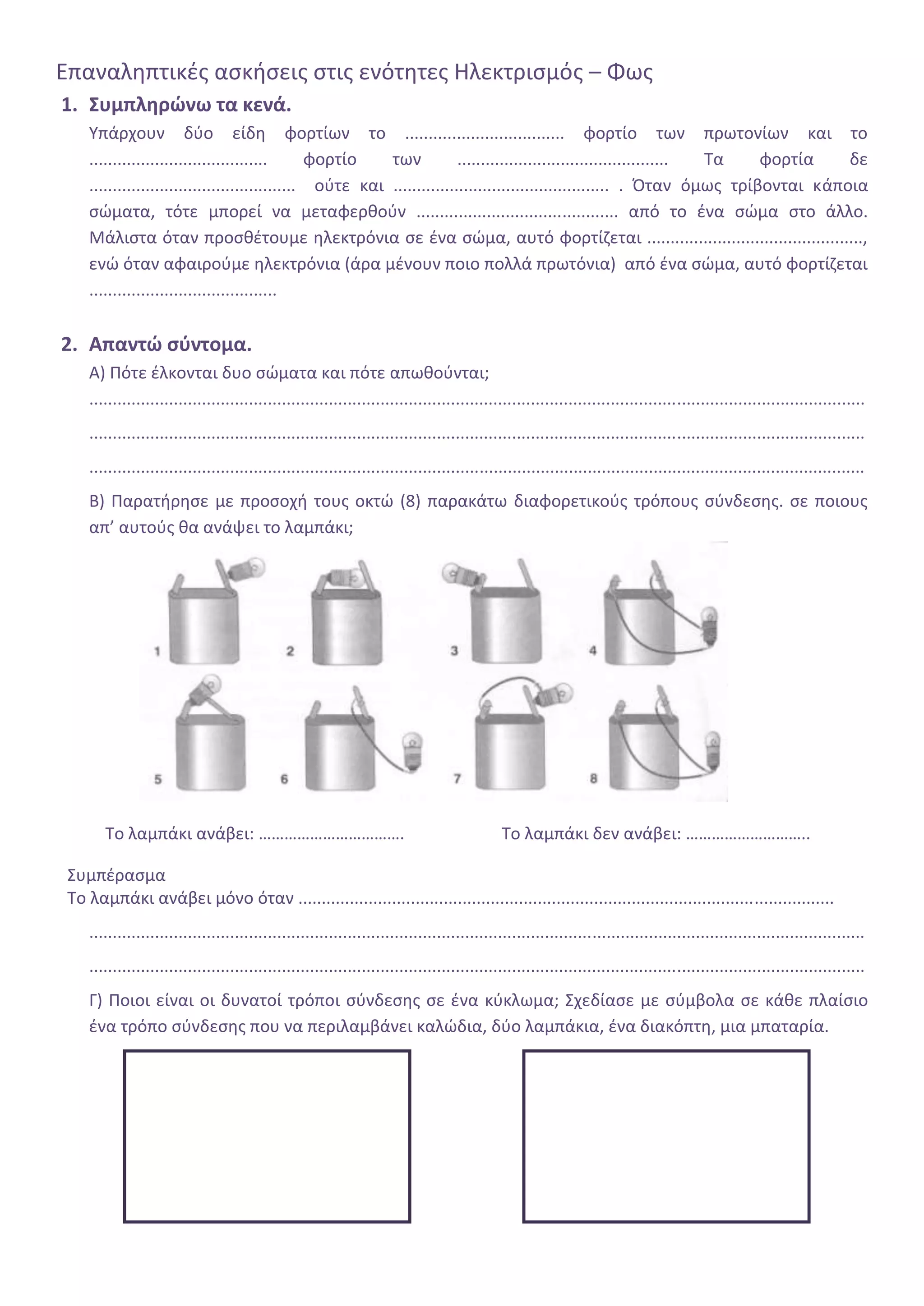 Επαναλθπτικζσ αςκιςεισ ςτισενότθτεσ Ηλεκτριςμόσ – Φωσ