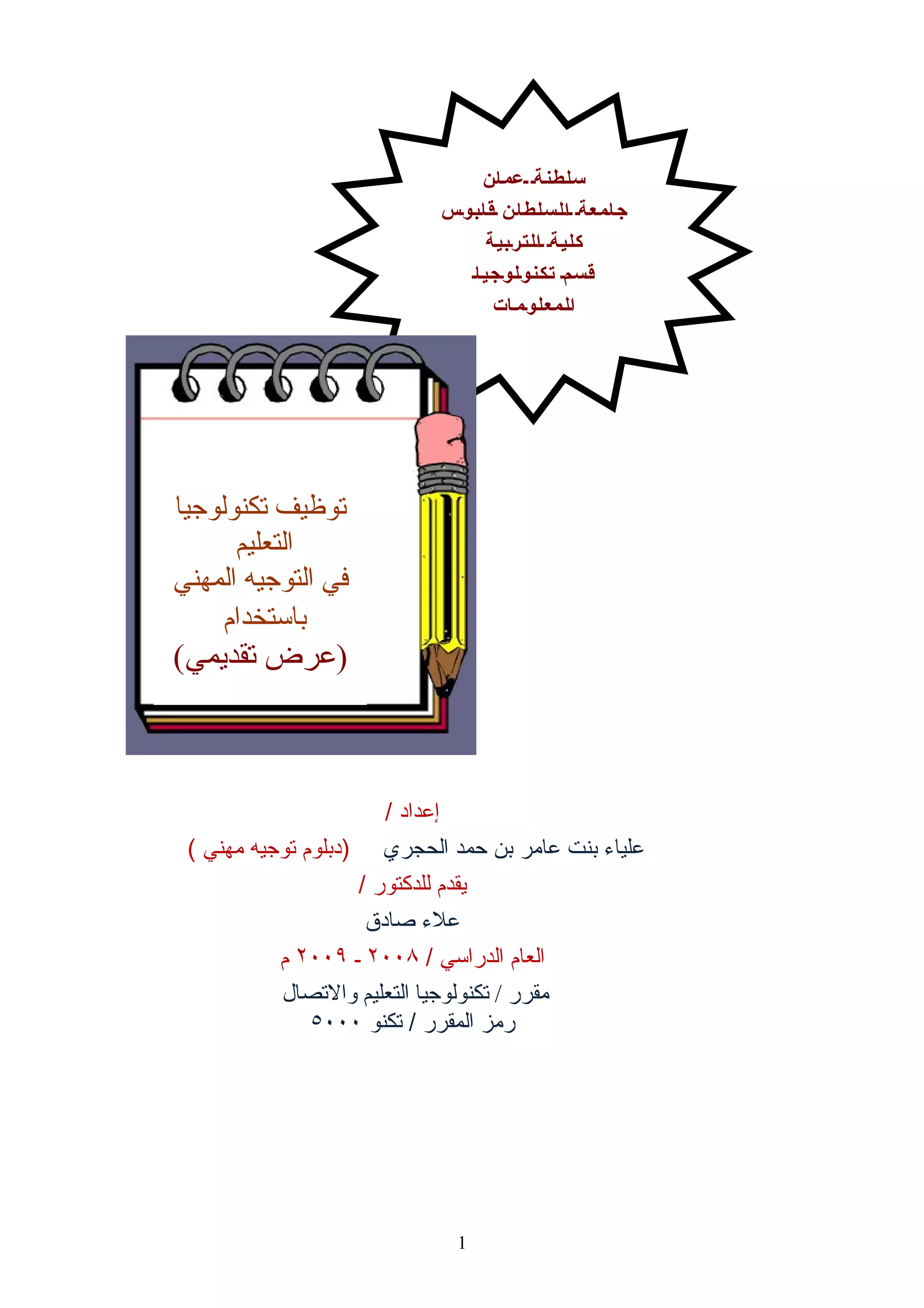 تقرير حول تطبيق تكنولوجيا التعليم ( الوورد) في التوجيه المهني