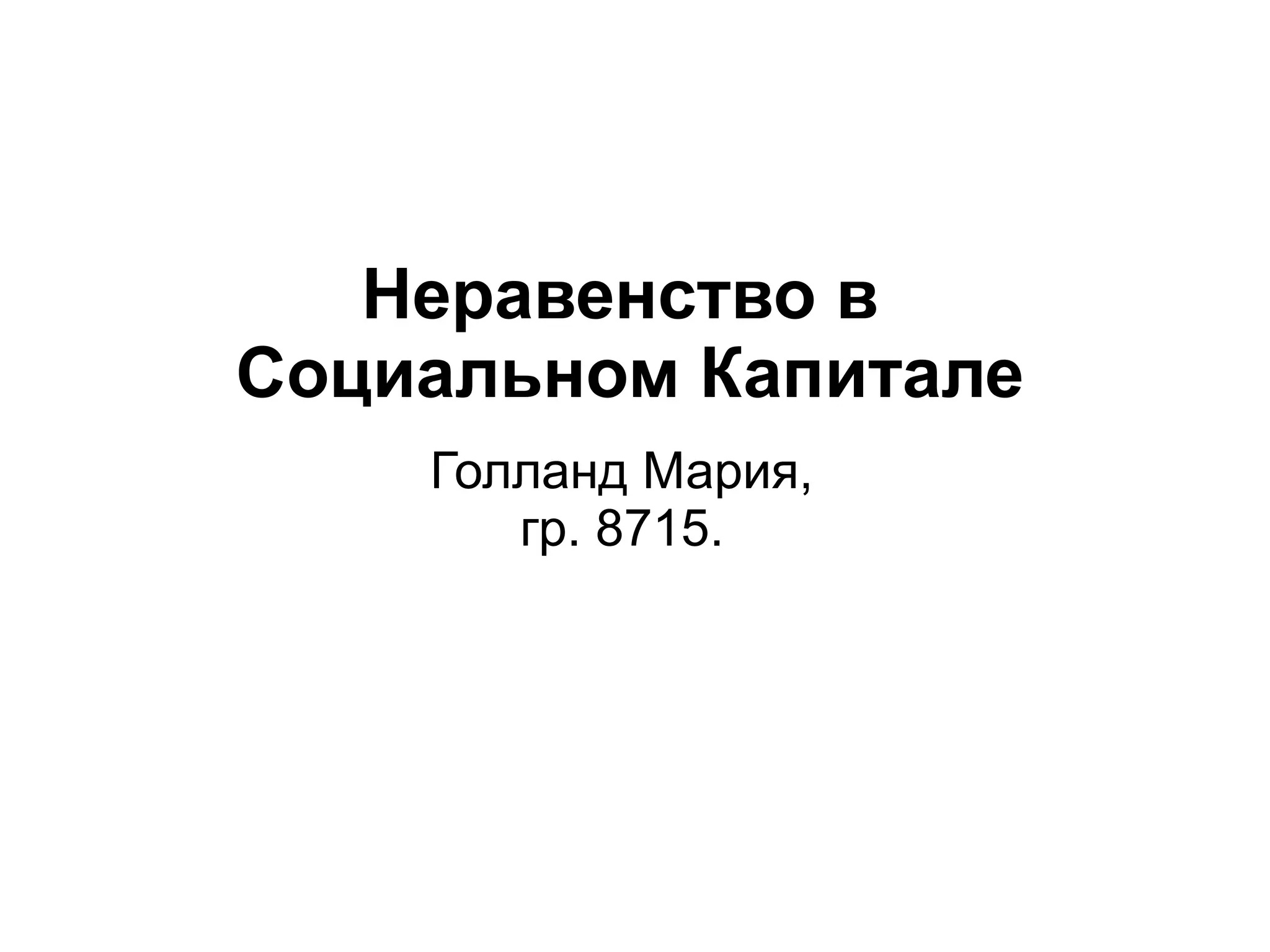 Документ обсуждает неравенство в социальном капитале, который определяется как внутренние ресурсы, используемые индивидами в социальных отношениях. Он выделяет феномены, связанные с распределением социального капитала по группам, и рассуждает о влиянии гендерных и рассовых различий. Также рассматривается дефицит капитала и возврата, а также важность принадлежности к ресурсным сетям.