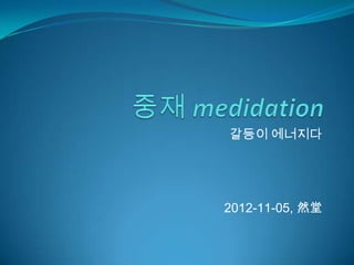 중재 과정에 대한 개론적 설명, 중재 과정을 개설하는 이유, 현재 왜 이 과정이 필요한가, 이론적 배경과 질문들, NVC에서 말하는 욕구, 욕구로 연결하기, 집단 지성으로 나아가기 위한 전제 등