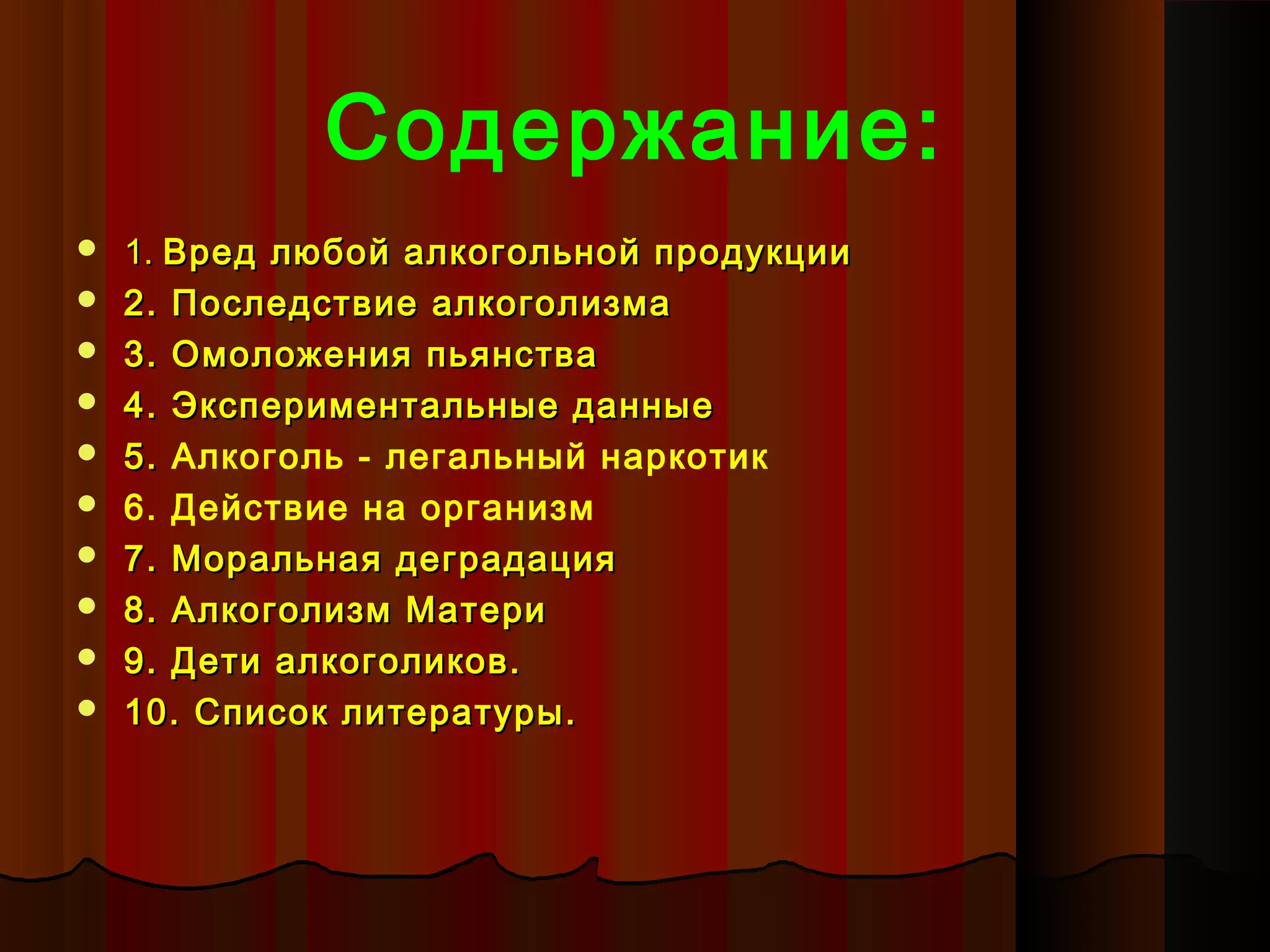 Документ рассматривает вред алкоголя, его пагубные последствия для здоровья, а также влияние на молодежь и общество в целом. Описываются последствия для организма, включая алкогольную зависимость, ухудшение моральных качеств и наследственные заболевания у детей алкоголиков. Исследуются также экспериментальные данные, подтверждающие негативное воздействие алкоголя на здоровье человека и животных.