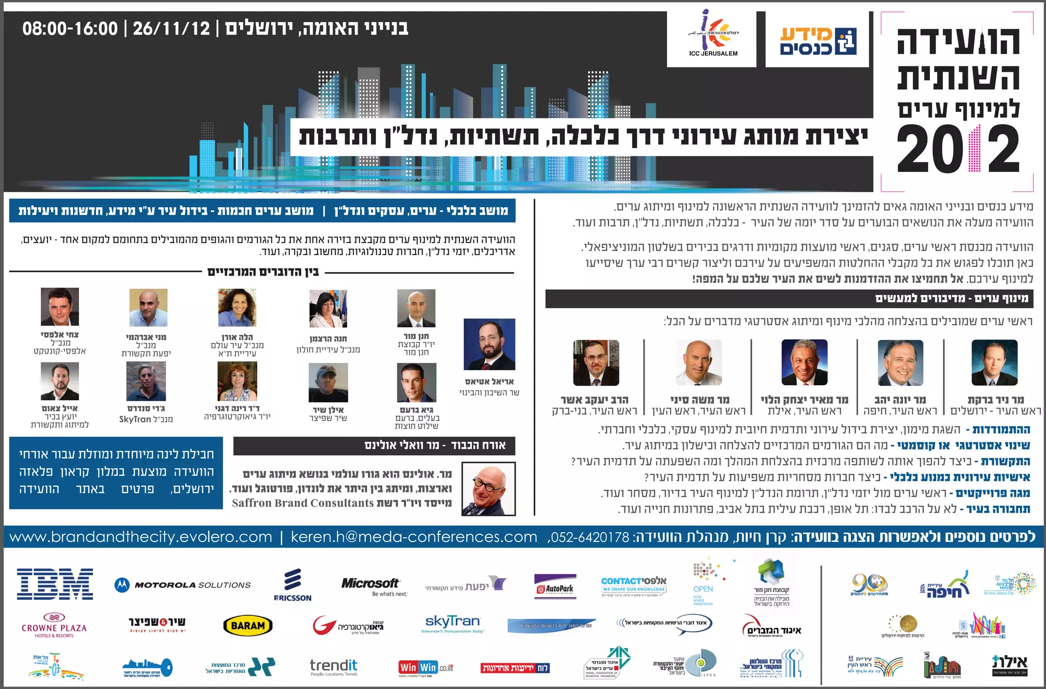 לפרטים נוספים ולאפשרות הצגה בוועידה: קרן חיות, מנהלת הוועידה: 8710246-250, www.brandandthecity.evolero.com | keren.h@meda-conferences.com