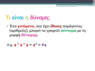 π.ρ. 5 4 = πέληε ζηελ ηέηαρηε = 5 * 5 * 5 * 5 = 625