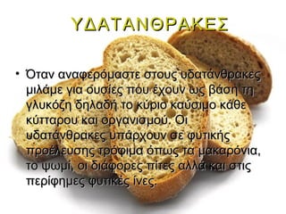 • Όταν αναφερόμαστεστους υδατάνθρακες