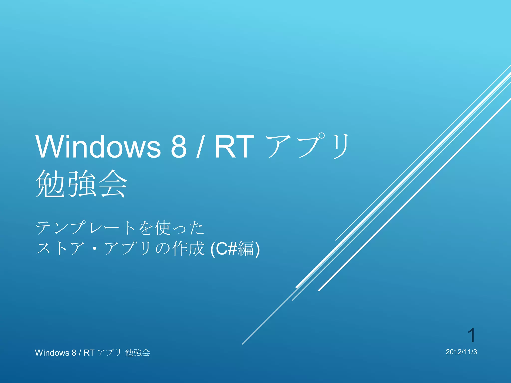 RT アプリ 勉強会 テンプレートを使った ストア・アプリの作成 (C#編) 1 Windows 8 / RT アプリ 勉強会 2012/11/3