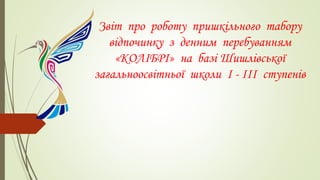 Звіт про роботу пришкільного табору відпочинку з денним перебуванням «КОЛІБРІ» на базі Шишлівської загальноосвітньої школи І - ІІІ ступенів