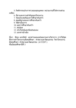 ฝึกการทำาโครงงานสังคมศึกษา ศาสนาและวัฒนธรรม วิชาโครงงาน