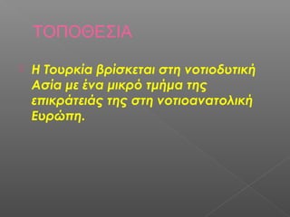 Η Τουρκία βρίσκεται στη νοτιοδυτική