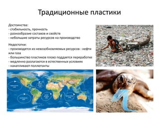 Документ обсуждает биоразлагаемые пластики, их плюсы и минусы по сравнению с традиционными пластиковыми материалами. Он описывает виды биоразлагаемых полимеров и сырье для их производства, подчеркивая потенциальные риски для продовольственной безопасности. Упоминается важность повторного использования упаковки для снижения воздействия на окружающую среду.