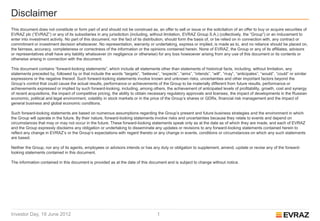 The document summarizes EVRAZ's investor day presentation held on 19 June 2012 in London. It discusses EVRAZ's strategy for future growth, commitment to high standards of corporate governance, and positioning as a leading low cost steel and mining company. Senior management provided an overview of EVRAZ's operations, markets, and financial performance, emphasizing its focus on maintaining a competitive cost position through vertical integration and operating in growing markets.
