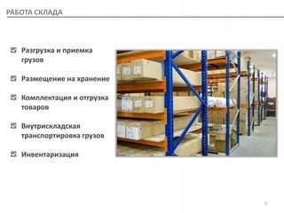 Документ описывает мобильное бизнес-приложение на платформе «агент плюс 2.0», предназначенное для автоматизации работы склада, включая прием, хранение и отгрузку товаров. Приложение помогает решить проблемы, такие как недостаточная информация о товарах и медлительность операций, а также улучшает производительность труда и качество работы сотрудников. В документе также рассматриваются возможности интеграции с различными конфигурациями '1С:Предприятие' и предлагаются три версии приложения с соответствующими функциями.