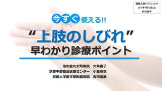 屋根瓦塾KYOTO 2019 2019年7月6日(土) 内科座学 “上肢のしびれ” 早わかり診療ポイント 洛和会丸太町病院 大角倫子 京都中部総合医療センター
