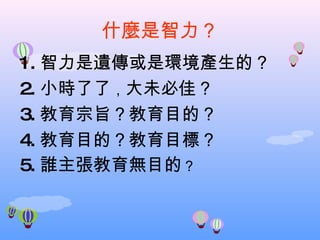 美國智能障礙的定義(一) 1876 年成立的American Association on Mental Retardation ( AAMR )。 目前已更名為: American Association on Intellectual and developmental disabilities 。 ( AAIDD ) Heber ( 1961 ) :智能不足係指身心發展期間的普通智力功能低劣狀態,伴隨著行為適應的損害。