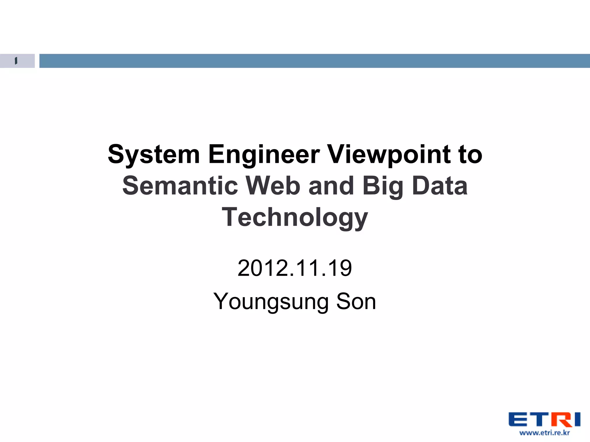 This document discusses semantic web, big data, and the Internet of Things (IoT) from the perspective of a system engineer. It describes how semantic web technologies can make web information machine-understandable. It provides examples of semantic web applications for intelligent search and knowledge management. It also discusses trends around the massive growth of data and explores how system engineers can help develop technologies to address issues of portability, interoperability, and scalability for IoT applications. Finally, it shares examples of IoT platforms and applications for smart homes and public parking lots.